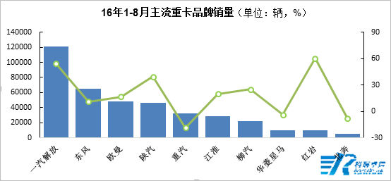 2016年1-8月主流重卡品牌銷量監(jiān)測(cè)