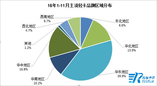 根據(jù)科瑞卓信調(diào)研顯示,2016年1-11月主流輕卡品牌共銷售64.3萬輛輕卡,同比增長1.68%,輕卡市場表現(xiàn)略有回暖。
