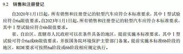 根據(jù)《輕型汽車污染物排放限值及測量方法(中國第六階段)》征求意見稿的規(guī)定,自2020年1月1日起,所有銷售和注冊登記的輕型汽車Ⅰ型試驗應(yīng)符合“國六a”限值要求,而自2023年1月1日起,所有銷售和注冊登記的輕型汽車Ⅰ型試驗應(yīng)符合“國六b”限值要求。